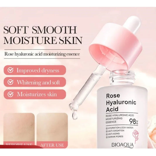 BIOAOUA Rose Nourishing Essence Hyaluronic Acid Moisturizing Face Serum Hydrating Brighten Shrink Pores Facial Skincare